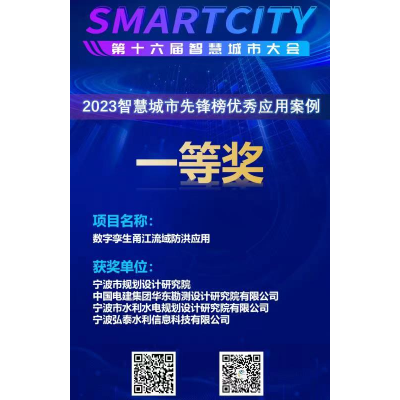 發(fā)布日期:2023.10.16 近日,我院與寧波市規(guī)劃設(shè)計(jì)研究院、華東勘測(cè)設(shè)計(jì)研究院有限公司、寧波弘泰水利信息科技有限公司共同承擔(dān)的“數(shù)字孿生甬江流域防洪應(yīng)用”項(xiàng)目作為寧波智慧城市創(chuàng)新應(yīng)用成果,... -