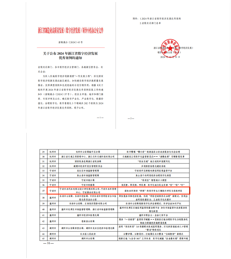 在產品創(chuàng)新方面,分別獲得第三屆寧波市專利創(chuàng)新大賽專利優(yōu)秀獎、“寧波市優(yōu)秀軟件產品”稱號、2024年“數(shù)據(jù)要素x”大賽浙江分賽獲優(yōu)勝獎,入選2024年度浙江省水利先進適用技術推廣指導目錄、2024年度寧波市優(yōu)質產品推薦目錄和2024年浙江省數(shù)字經濟發(fā)展優(yōu)秀案例近20項。