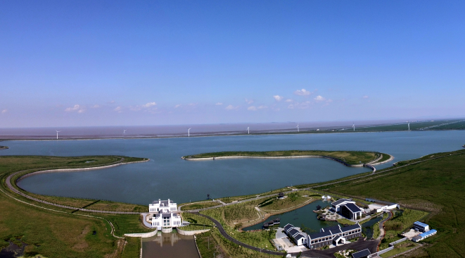 工程占地1萬畝,總庫容4508萬方,調(diào)蓄庫容3500萬方,屬中型水庫。其工程等別為Ⅲ等,主要建筑物級別為3級,洪水標準按50年一遇設(shè)計,300年一遇校核。工程主要建設(shè)內(nèi)容包括水庫堤壩長10929米,泵站1座(裝機容量800kw),放水閘1座,節(jié)制閘3座,排咸工程,同時建設(shè)湖心島、配套引水河道、橋梁、管理用房和綠化工程等。