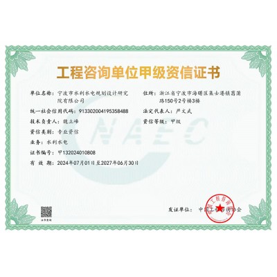 寧波院具有水利水電工程設(shè)計、工程勘察、工程咨詢、水土保持、水資源論證等多項資質(zhì)。承擔中小河流域規(guī)劃、水庫、河道整治、灘涂圍墾等工程的勘察、設(shè)計、咨詢、總承包業(yè)務(wù),以及各領(lǐng)域建設(shè)項目的防洪評價、水資源論證、水土保持方案編制、水土保持監(jiān)測、計算機行業(yè)CMMI 3級認證、知識產(chǎn)權(quán)管理體系認證等。